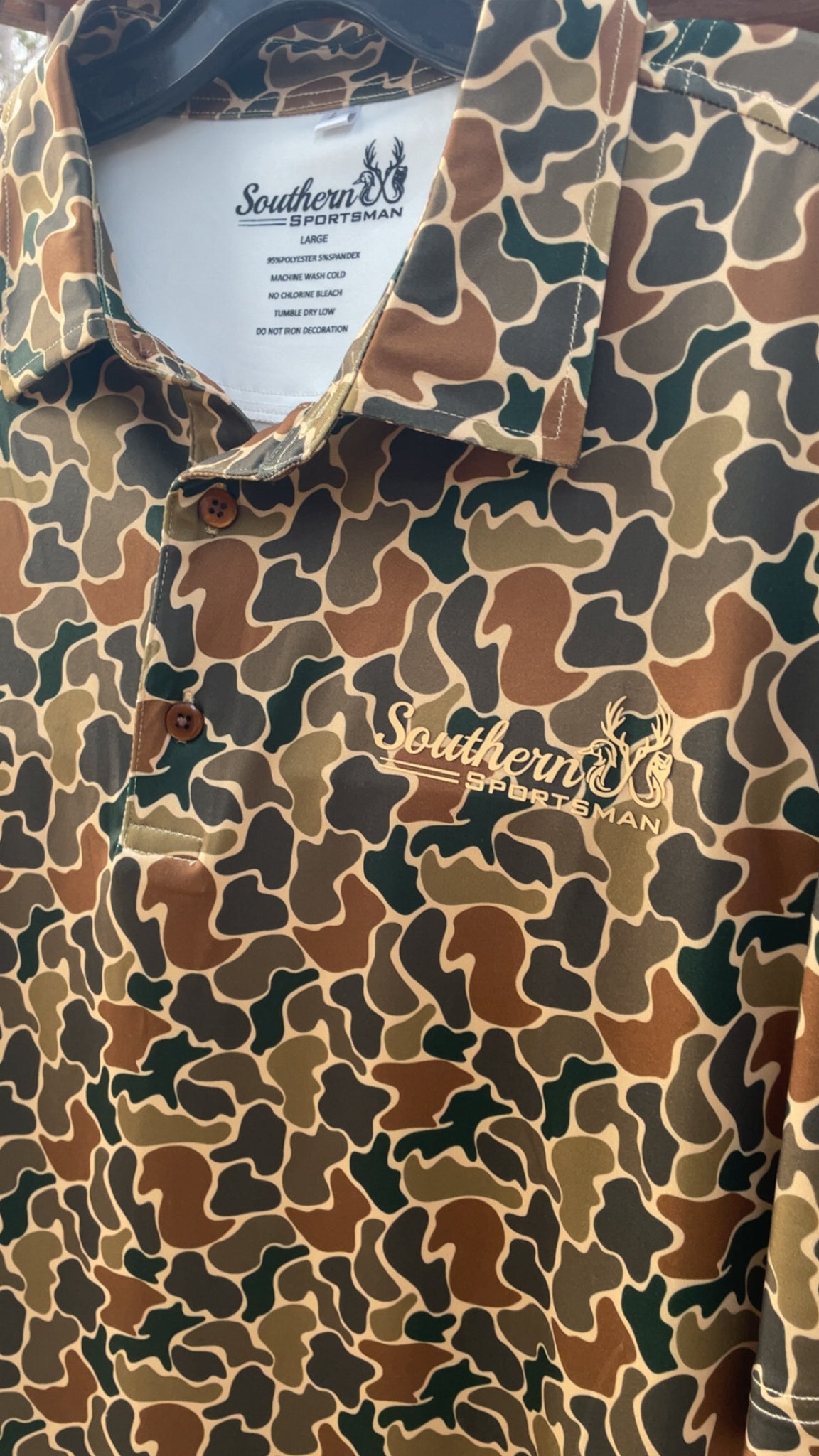 New duck camo collared shirt with 3 buttons! 95% polyester , 5% spandex!
